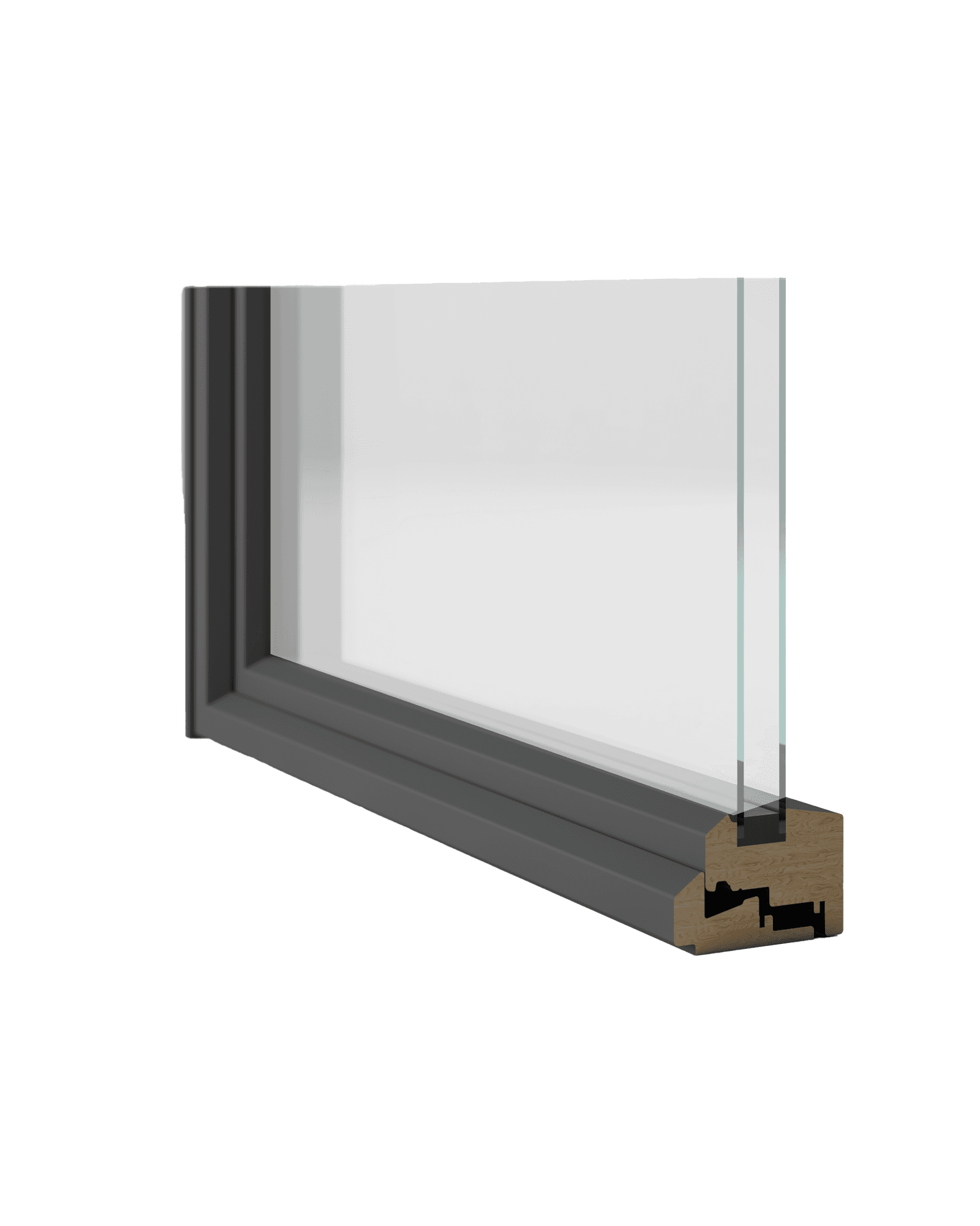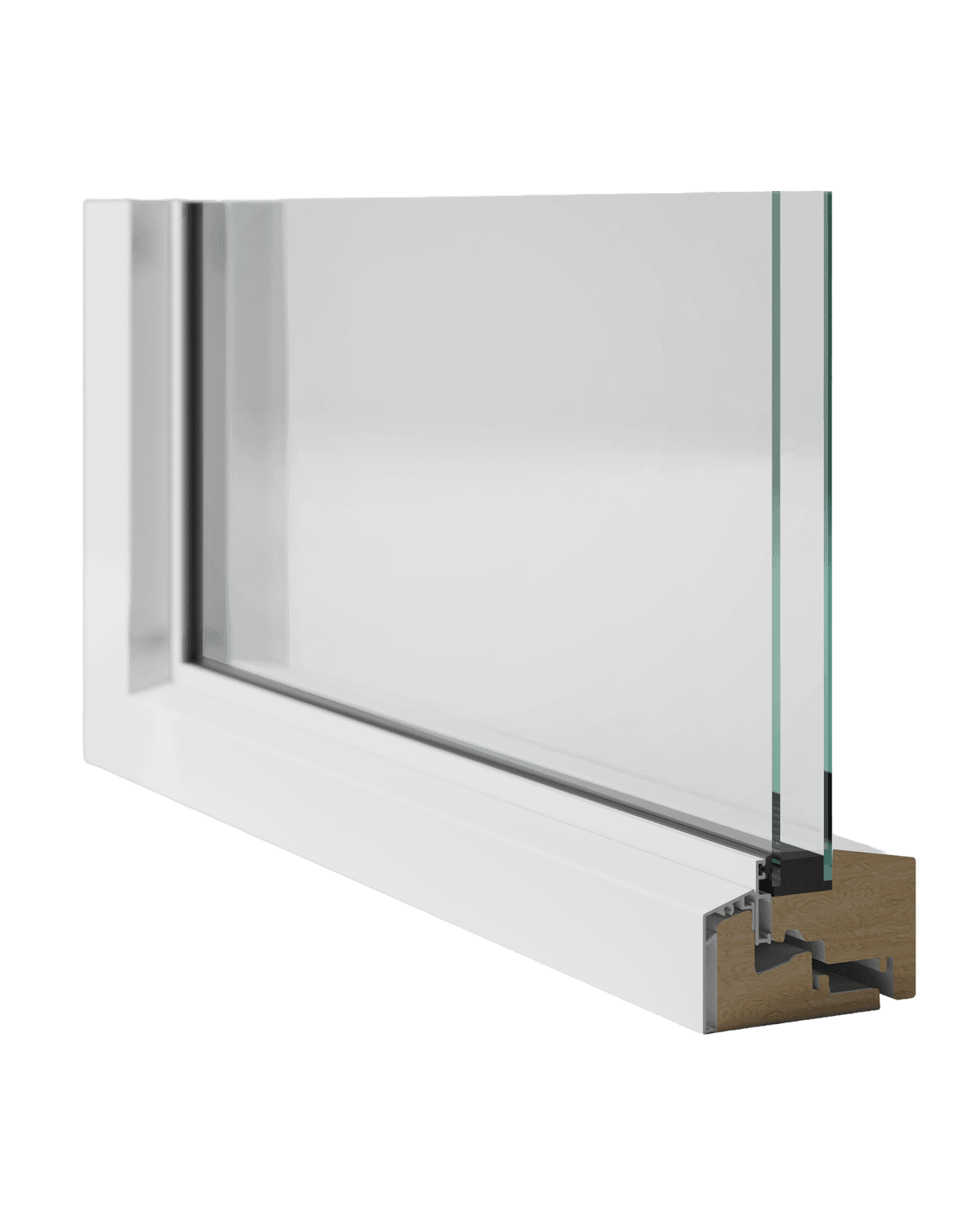 La combinazione di legno più alluminio, permette di proteggere maggiormente il legno all’esterno e godere del suo calore visivo e tattile all’interno.